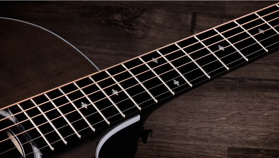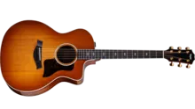 Showcasing a stylish yet understated aesthetic, the 214ce Plus Special Edition, Trans Grey combines visual sophistication with musical versatility and silky-smooth playability. A solid Engelmann spruce top is paired with layered sapele back and sides in our comfortable cutaway Grand Auditorium body, finished with a rich gloss sheen. Sonically, this special-edition model yields a balanced tonal profile with bold, clear projection, making it ideal for a wide range of playing styles. Inside, cantilevered V-Class bracing delivers impressive volume, enhanced sustained and greater harmonic agreement between notes. The top boasts a dark, transparent grey finish while a black finish wraps the back, sides and slim, easy-playing Taylor neck, which features an accomodating 1 11/16” nut width. Satin black tuners and a black pickguard create an appealing visual contrast with an Italian acrylic rosette, white peghead logo and white body binding. Small Diamond fretboard inlays add touches of contemporary elegance. Outfitted with ES2 electronics for a natural amplified acoustic sound, the 214ce Plus Special Edition, Trans Grey comes in a lightweight, durable AeroCase.