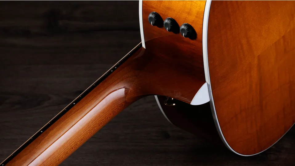 A round-shoulder Grand Pacific body delivers warm, rich sound complemented by a honey-hued finish treatment.