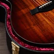 This deluxe Grand Concert acoustic-electric boasts a gorgeous visual profile thanks to back, sides and top of beautiful Hawaiian koa. A solid top yields a punchy midrange response with clear trebles and a woody, focused character that will grow even warmer over time. The compact body shape and narrower 1-11/16-inch nut width make for a remarkably accommodating, relaxed feel, perfect for everything from flatpicking and strumming to fingerstyle arrangements. Aesthetic refinements include a full-body gloss finish and gold hardware. This model includes ES2 electronics for clear, balanced plugged-in tone and a hardshell case for storage and transportation.