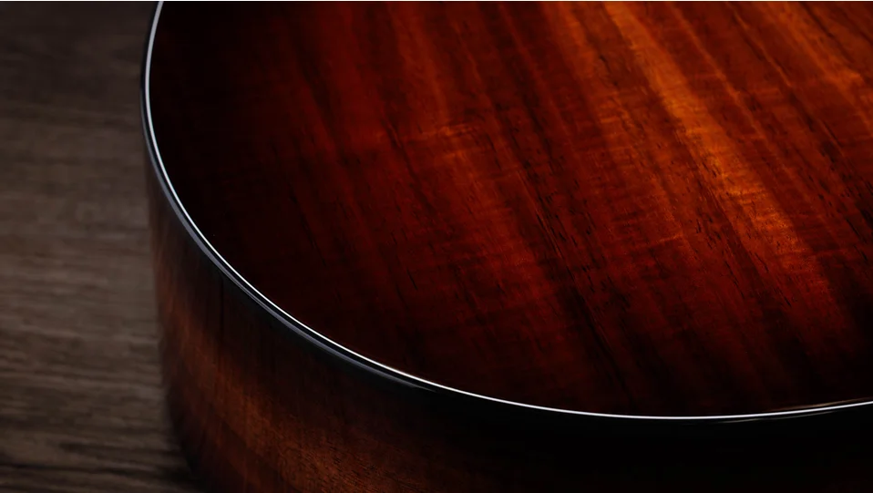A koa top's visual beauty is instantly inspiring, while its sonic rewards unfold over time, as warm, sweet overtones gradually emerge.