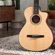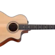 Our soft cutaway has a flatter slope than our standard Venetian style. Grand Concert nylon-string models feature a subtler version.