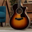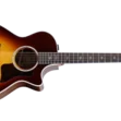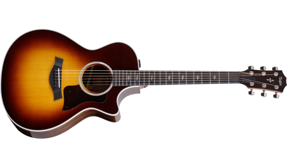 With its warm response and striking visuals, the 412ce is a perfect choice for a wide range of guitar players. The classic tonewood combination of Indian rosewood and Sitka spruce delivers a lush overtone profile with crisp trebles and a rich low end, framing a slightly scooped midrange that leaves room in the mix for other musicians. The compact Grand Concert body shape and slender Taylor neck make for a relaxed, accommodating feel, along with an articulate sound that makes this model especially ideal for fingerstyle players. Appointments include a new Finial inlay design to complement the sunburst top finish. This model ships with ES2 electronics and a deluxe hardshell case.