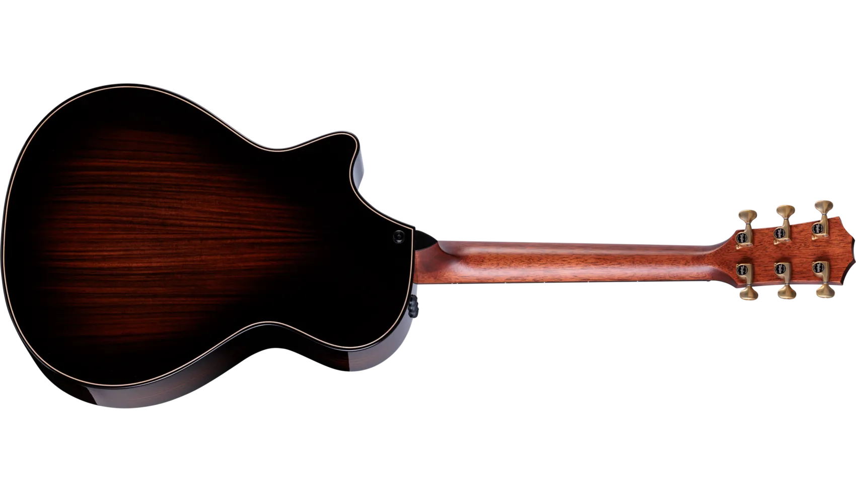 Our compact Grand Concert body style, with its shorter scale length and lap-friendly proportions, is renowned for its physical comfort and focused, articulate sound. This refined Builder’s Edition Grand Concert offers an ultra-comfortable, hand-pleasing playing experience thanks to a beveled armrest and Venetian cutaway, chamfered edges and a contoured Curve Wing bridge. Solid Indian rosewood back and sides, featuring a Kona edgeburst, pair with a sinker redwood soundboard to produce a warm, rich and balanced sound with a wide dynamic range. Sourced from old-growth logs that lay submerged for decades in California riverbeds, sinker redwood offers cedar-like soft-touch sensitivity with ample headroom for more aggressive playing styles. V-Class bracing levels up volume and sustain while ensuring more harmonic agreement between notes all the way up the slender, familiar Taylor neck. Premium 50th Anniversary appointments – Gotoh 510 antique gold tuners and gold-dotted ebony bridge pins – are complemented by an array of elegant details including an Indian rosewood pickguard, abalone rosette and Element inlays in gold-hued mother of pearl. The 50th Anniversary Builder’s Edition 812ce LTD comes outfitted with an ES2 pickup and commemorative label inside. It ships in a Taylor deluxe hardshell case.
