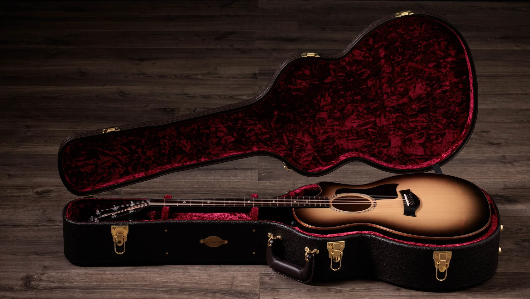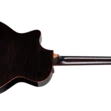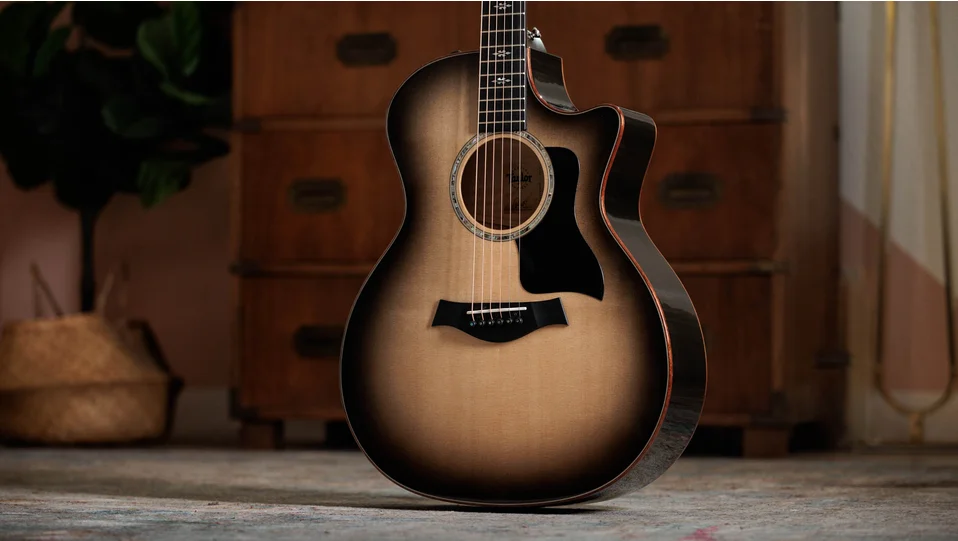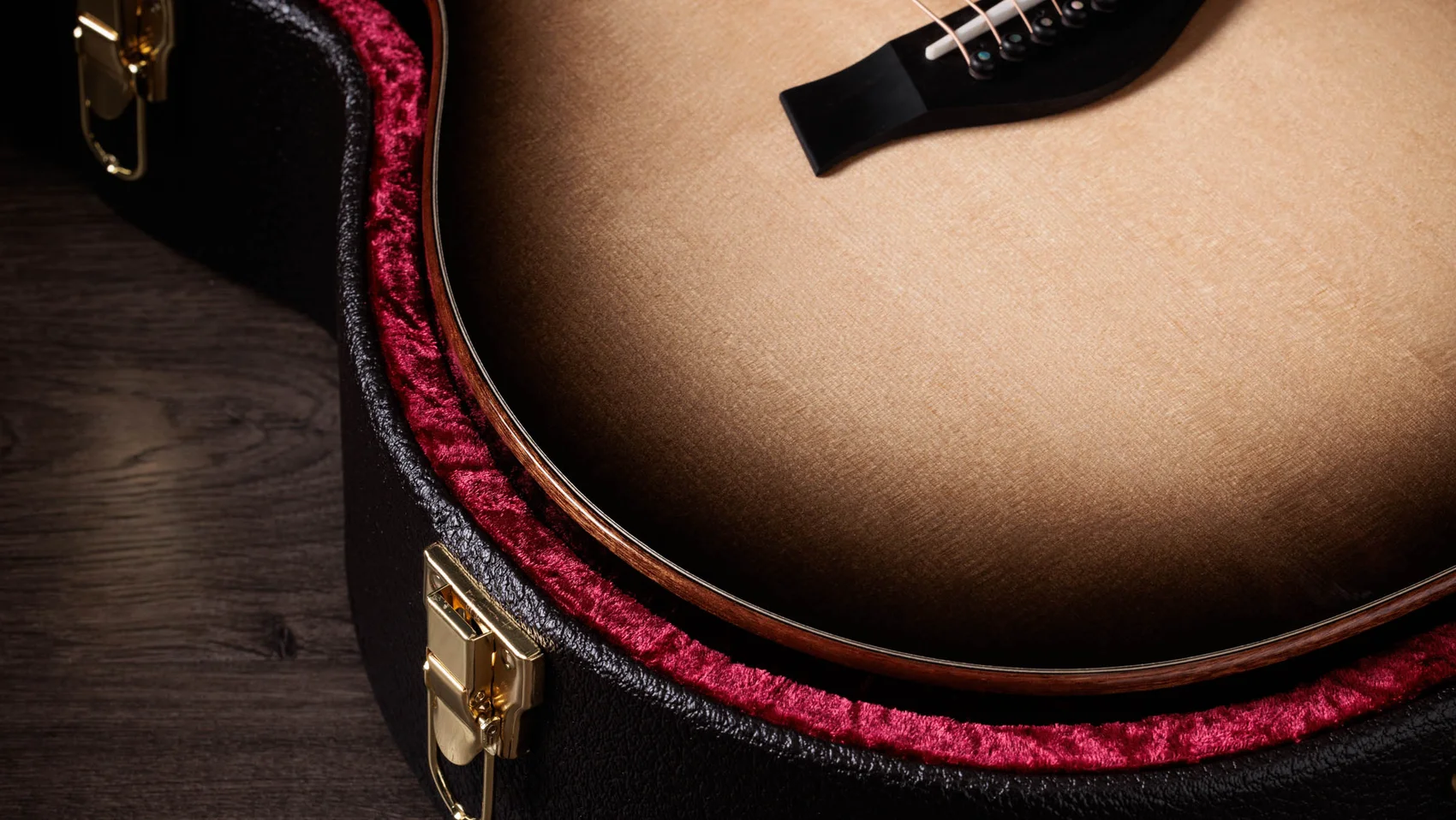 A charcoal edgeburst spruce top is one of several striking aesthetic touches on this cutaway Grand Auditorium 614ce Special Edition. The body’s figured maple back and sides sport a glossy, transparent light black color finish that reveals the figure in a subtle way and transitions smoothly into the top’s dusky edgeburst. Richly grained sapele binding adds a woody visual counterpoint. Tonally, the maple/spruce tonewood pairing yields a clear, balanced voice with a pleasing blend of brightness and warmth and responds well to a player’s touch. Voiced with Taylor’s V-Class bracing, this guitar will sing beautifully in tune from any fretting position and resonate with impressive sustain. Premium Gotoh 510 tuning machines in antique chrome feature an ultra-precise 21:1 gear ratio for smooth pitch control. Other visual details include a trans light black/ satin-finish neck, pale green abalone “Reflections” fretboard/peghead inlays, a single-ring green abalone rosette, ebony bridge pins with green abalone dots, and a black pickguard. The guitar comes with stage-ready ES2 acoustic electronics and ships in a deluxe hardshell case.