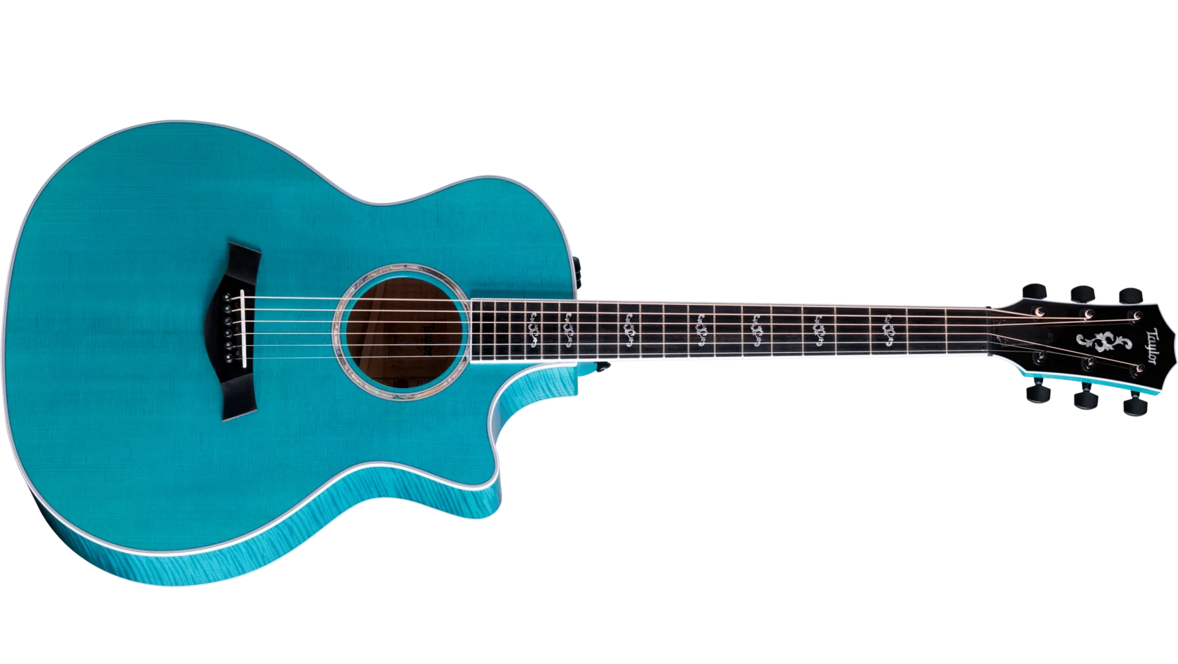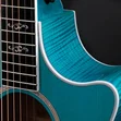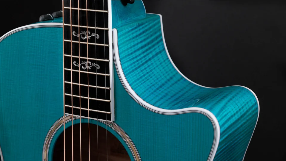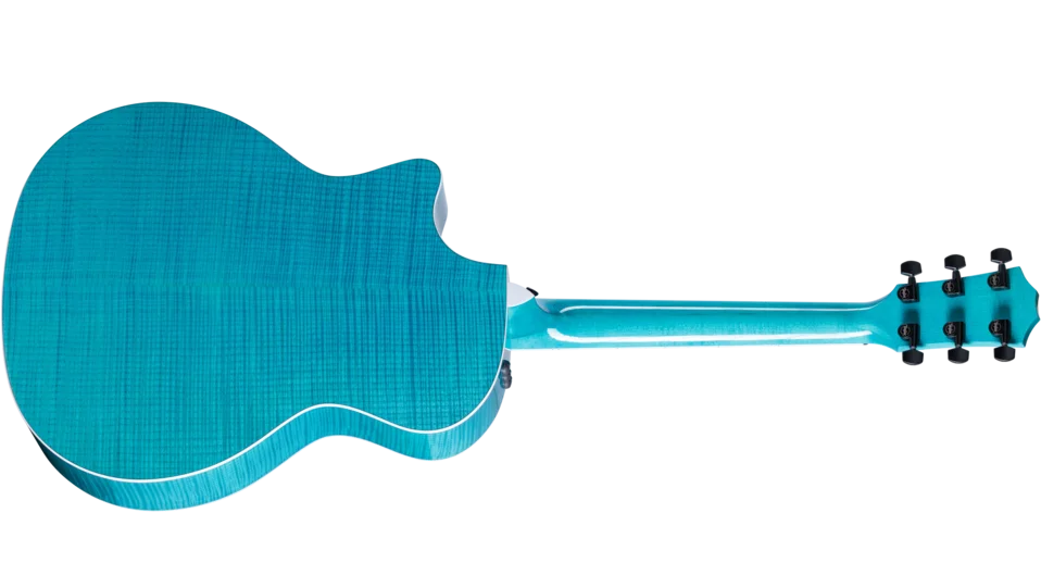 Boasting a beautiful blue color treatment and suite of elegant appointments, the 614ce Aquamarine LTD brings a fresh, attractive visual aesthetic to our time-tested maple/spruce Grand Auditorium. Pairing solid, figured Big Leaf maple back and sides with a solid Sitka spruce top, this U.S.-made model offers a highly player-reflective sound and a balanced response across the frequency spectrum. V-Class bracing levels up the volume and sustain, while ensuring immaculate pitch accuracy up and down the neck. Eye-catching white binding and purfling add stark contrast to the attractive gloss-finished aquamarine color treatment. Elegant visual details, including Italian acrylic Engraved Victorian inlays, a single-ring green abalone rosette and abalone-dotted bridge pins, complement the guitar’s enchanting visual aesthetic. It ships with ES2 electronics and a hardshell case.