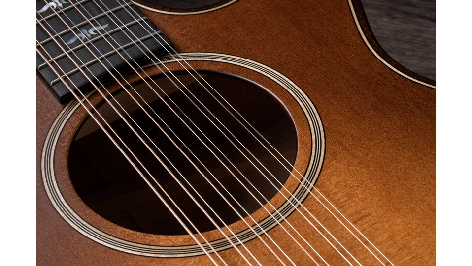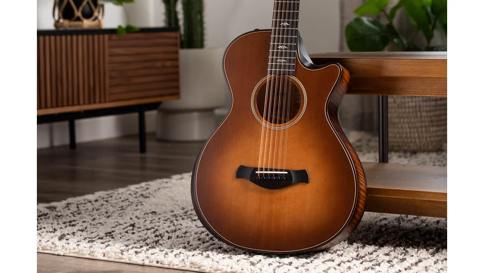 Back and sides of solid Big Leaf maple voiced with personal touches from Andy Powers set the Builder's Edition 652ce WHB 12-string guitar apart from the rest of the Taylor line. Coupled with a torrefied spruce top, maple produces a vibrant sound with a transparent quality that emphasizes the unique style of each player, while the special roasting process for the soundboard adds a touch of aged-in sweetness. V-Class bracing draws out more volume and sustain while making for a cleaner harmony between notes all the way down the neck, and the reverse-strung setup (with the heavier string on top of each pair) delivers more midrange heft and warmth. The comfortable Grand Concert body is appointed with an armrest, rolled edges, a beveled cutaway and our Silent Satin finish.