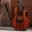 Our beveled cutaway design provides a more player-friendly feel for guitarists who utilize every inch of the fretboard. It features a compound design with a smoothened edge along the corner of the body between the end of the cutaway and the neck heel, providing a more comfortable feel for the fretting hand.