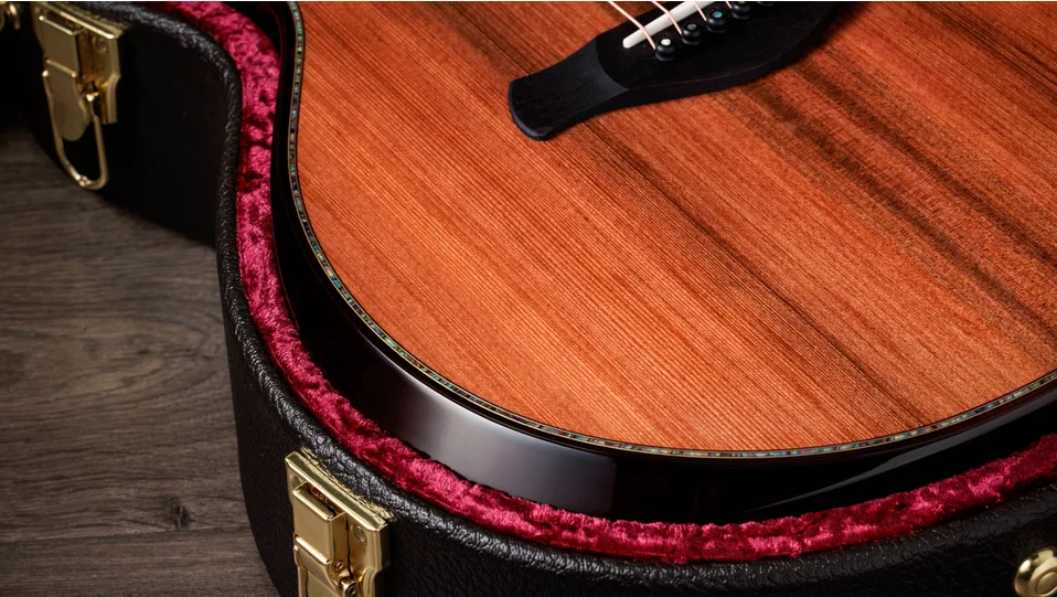 World-class tonewoods, comfort-enhancing design elements and a suite of luxurious appointments make the Builder's Edition 912ce a marvel to see, hear and hold. Solid Honduran rosewood back and sides yield an exquisitely textured, harmonically complex tone with warm lows, piano-like trebles and lush, blooming overtones with enough clarity to cut through a mix. A hand-selected striped sinker redwood top, sourced from logs submerged for decades in silt-rich California riverbeds, adds cedar-like warmth and touch sensitivity along with a higher volume ceiling and enhanced dynamic range. Under the hood, V-Class voicing architecture further elevates the response with more power and sustain. Meanwhile, the Grand Concert body continues to deliver a hand-friendly playing experience due to its shorter scale length, lighter string tension and touch sensitivity. A beveled armrest and cutaway, chamfered body edges and a smooth Curve Wing bridge add to an ultra-comfortable playing experience. Visual appointments include Kona edgeburst back and sides with a heelburst neck, Hawaiian koa purfling, paua edge trim, Belle Fleur inlays in paua and mother-of-pearl, and antique gold Gotoh 510 tuners. It ships with ES2 electronics and a hardshell case.