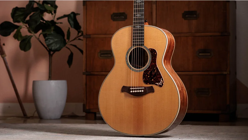 Boasting superior craftsmanship, top-tier tonewoods and a bevy of design innovations, the Gold Label 814e introduces the world to a new kind of Taylor sound. This model features a new body shape we've called the Super Auditorium, a slightly larger version of our famous Grand Auditorium shape that yields impressive power with a heritage-inspired warmth and richness that will entice traditionalists and contemporary ears alike. Back and sides of Honduran rosewood are paired with a torrefied Sitka spruce top, delivering exceptional low-end presence, clear trebles and a complex harmonic character with overtones that bloom as notes resonate. Inside, a new iteration of our V-Class bracing dials up longer sustain, greater volume and near-perfect pitch accuracy all the way up the neck. A new long-tenon neck joint improves overall resonance and sonic transfer, also providing super-precise adjustability whenever the need arises. This Super Auditorium guitar sports a fresh suite of visual appointments with a new Continental inlay suite, a new pickguard design, grained ivoroid trim, antique chrome Gotoh 510 tuners with ebony buttons, bone bridge pins, and a gloss-finished body. It ships with LR Baggs Element VTC electronics and a deluxe hardshell case with a British Cocoa exterior.
