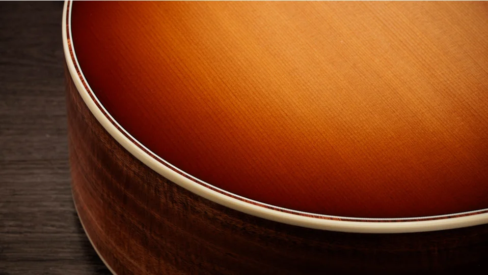 This sunburst-finished Super Auditorium blends heritage warmth with exceptional power thanks to Hawaiian koa, torrefied spruce and fanned V-Class bracing.