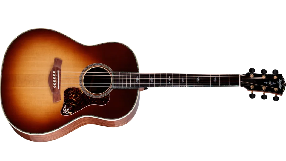 Showcasing the Gold Label Collection’s finest tonewoods and most elaborate visual artistry, the Gold Label 917e SB delivers a deep, powerful sound and signature Taylor playability. Honduran rosewood and torrefied Adirondack spruce yield a harmonically complex voice with lush, blooming overtones and a sweet, played-in personality. Perfect for dynamic flatpicking and aggressive strumming, a deeper Grand Pacific produces thunderous lows and warm trebles, balancing a season, blended sound with pleasing musical clarity.