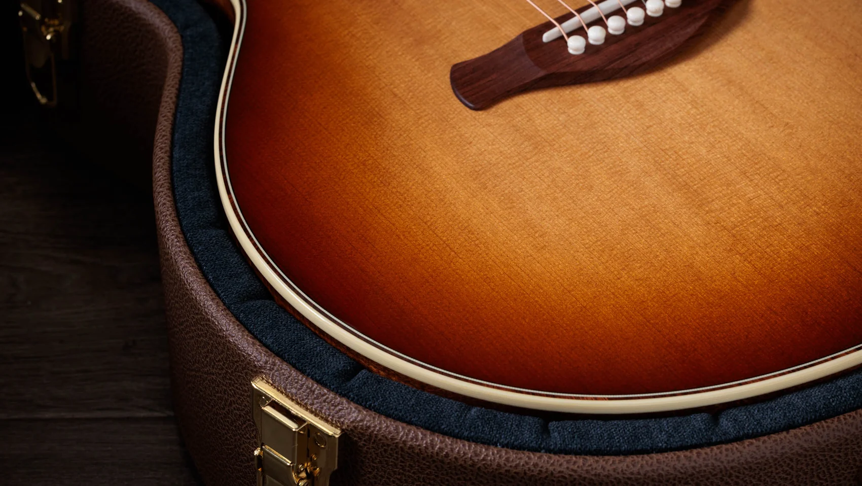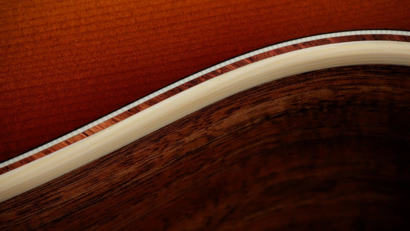 This sunburst-finished Super Auditorium blends heritage warmth with exceptional power thanks to Hawaiian koa, torrefied spruce and fanned V-Class bracing.