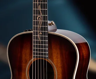 The new GT body style borrows the basic body curves of our Grand Orchestra (our largest body style), but they’re scaled down for comfort. The width at the lower bout is nearly the same as the Taylor Grand Concert, but the GT’s body length is shorter and the body depth is slightly reduced. This creates an accessible feel for all types of players and scenarios, from the couch to the campfire to the concert hall.