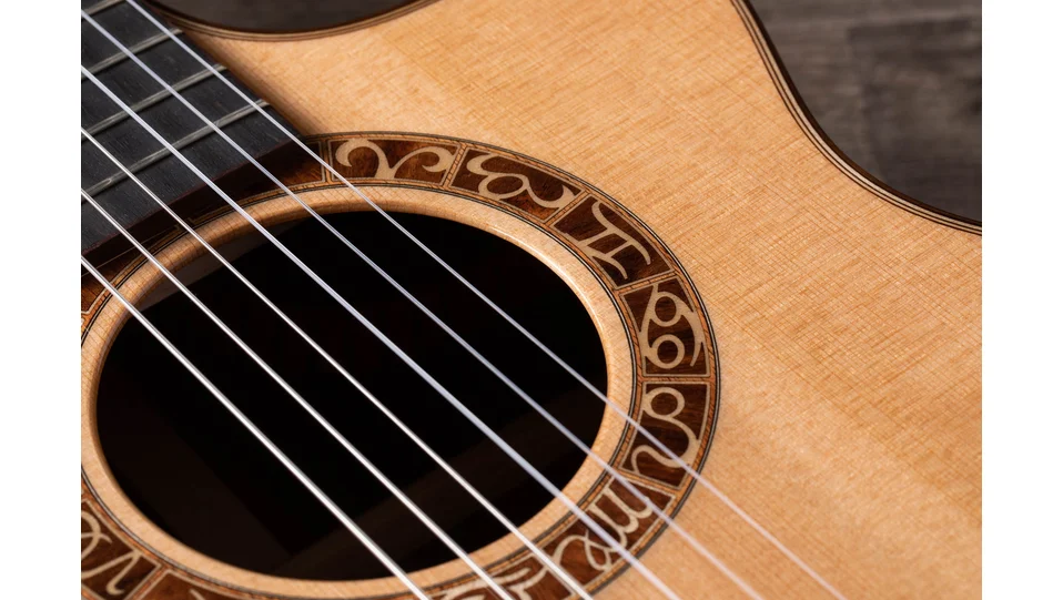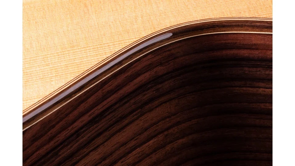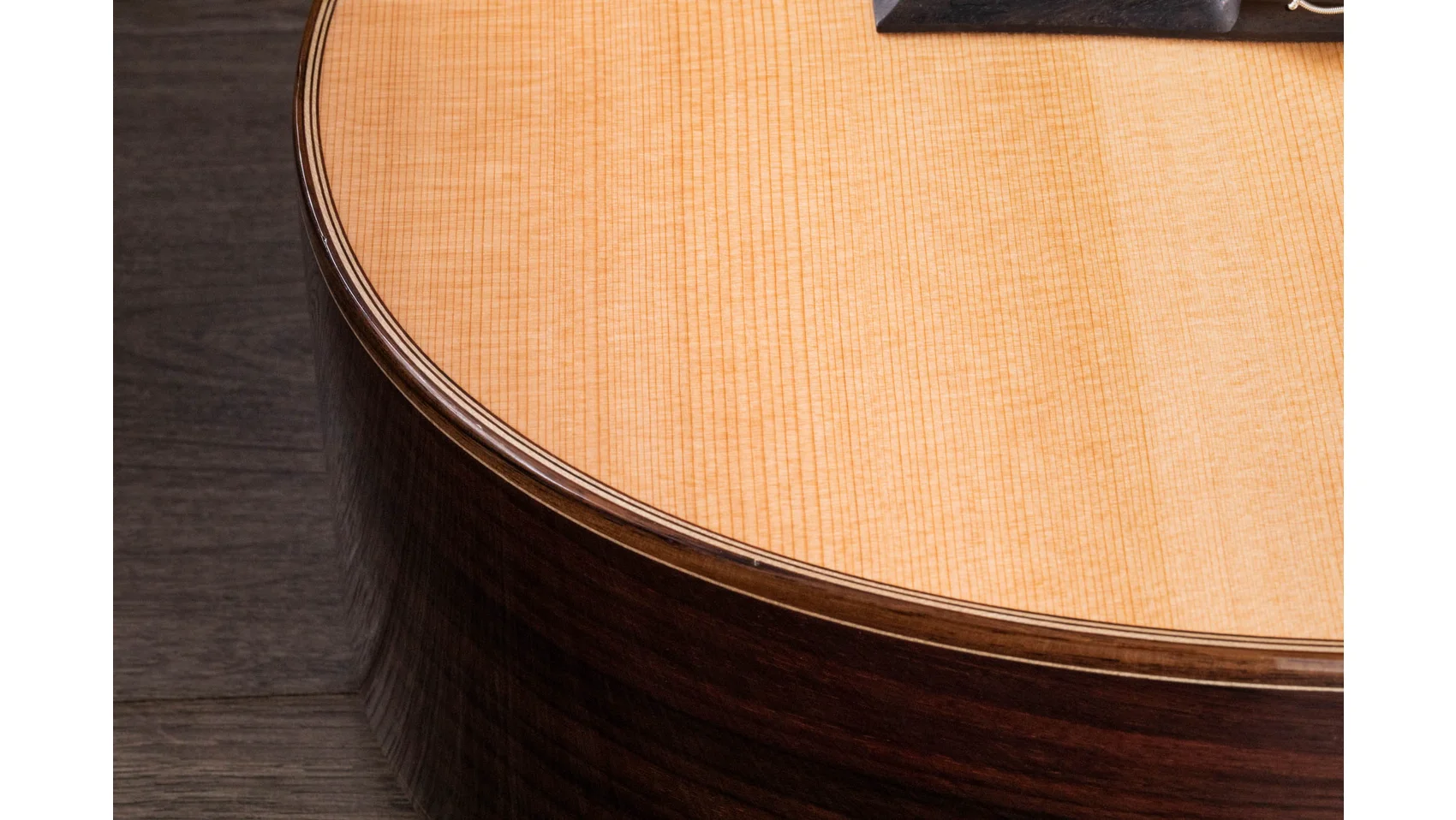 Our soft cutaway has a flatter slope than our standard Venetian style. Grand Concert nylon-string models feature a subtler version.