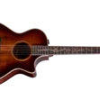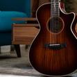 Our all-koa Grand Concert has long been a player favorite for its combination of musical complexity and visual beauty. The K22ce, made with top, back and sides of solid Hawaiian koa, boasts an eye-catching aesthetic thanks to a lustrous finish treatment and organic visual appointments that honor koa's island origins. Tonally, this model serves up a blend of warm midrange frequencies and a clear, articulate top-end, making it a great choice for fingerstyle players. The koa top also adds a bit of natural compression to balance out an aggressive attack, which is helpful in recording situations. The K22ce ships with built-in ES2 electronics and a deluxe hardshell case.