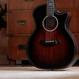 With a suite of updates to complement its array of comfort-enhancing features, the Builder's Edition 324ce offers a newly refined take on a versatile Grand Auditorium guitar. This model boasts back and sides of solid sapele paired with a mahogany top, yielding a hefty midrange punch with a focused, balanced character and controlled overtones. Inside, a scalloped take on our V-Class bracing architecture dials up improved volume, sustain and harmony between notes across the fretboard. Other upgrades include a long-tenon Action Control Neck that enhances resonance while offering unprecedented adjustability so you can achieve the perfect feel, as well as new Claria electronics with an intuitive mid-contour control that makes it easy to get perfect plugged-in tone for amplified scenarios. Other details include chamfered body edges, a beveled armrest and cutaway, Weathervane inlays in grained ivoroid, and a satin finish with a Kona burst color for the top and back.