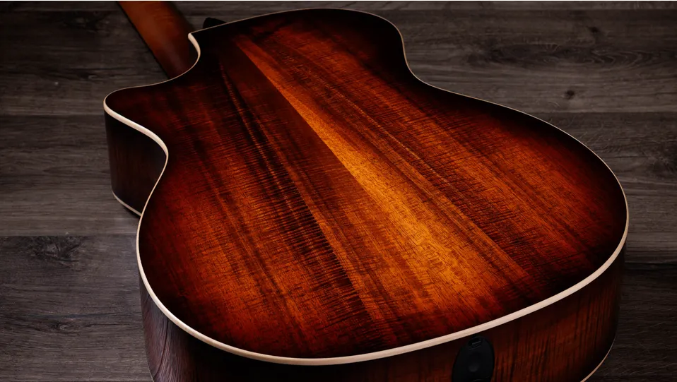 A koa top's visual beauty is instantly inspiring, while its sonic rewards unfold over time, as warm, sweet overtones gradually emerge.
