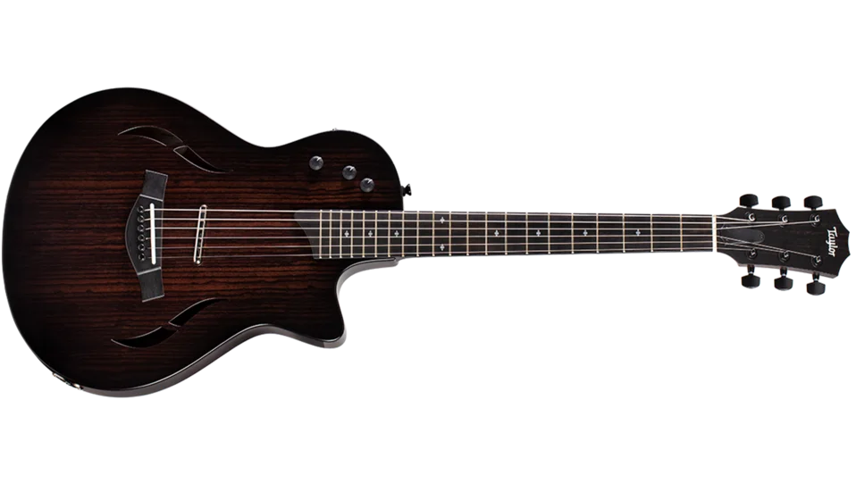 With its alluringly dusky aesthetic and highly malleable tone, the T5z Classic - Rosewood offers a distinctive visual flavor of our hybrid hollowbody electric guitar. Outfitted with two humbuckers and an acoustic magnet pickup, the T5z Classic boasts a wide tonal range that the player can access on the fly with built-in switching that provides five different pickup combinations. The innovative electronics can serve up warm acoustic sounds just as effectively as vibrant electric tones, and plays well with pedals and other effects. A fast-playing neck with jumbo frets ensures a smooth, relaxed feel, and the 12" fretboard radius makes dramatic bends and other techniques feel easier on your fingers. This model ships with a lightweight, sturdy AeroCase.