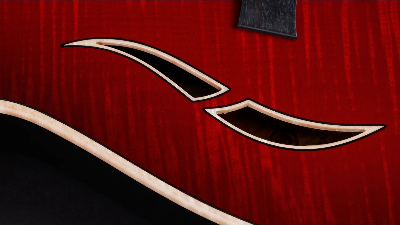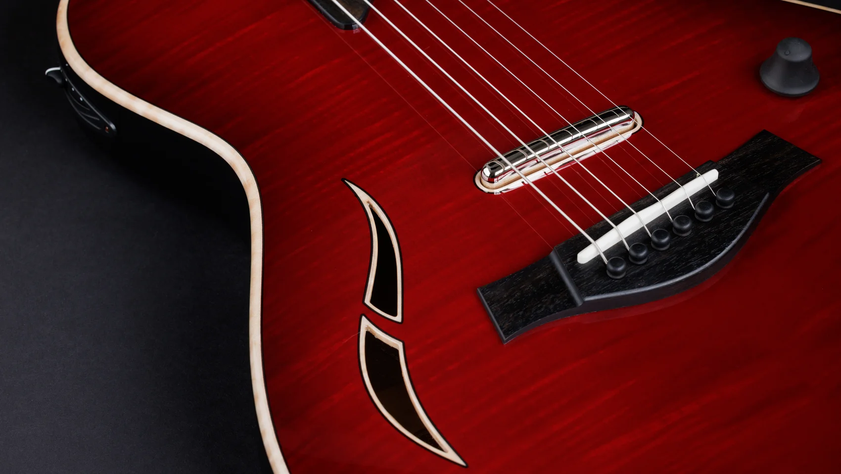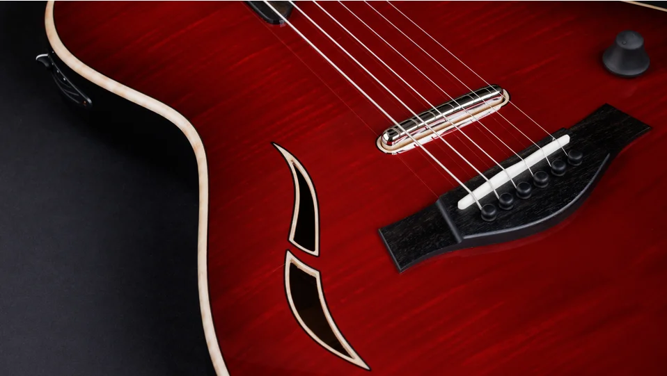Originally designed to help players access an unmatched range of electric and amplified acoustic tones in a single instrument, the T5z Pro delivers a truly unique musical experience thanks to its hybrid hollowbody design and innovative three-pickup configuration. A concealed neck humbucker, a visible humbucker in the middle position and an acoustic body sensor, integrated with easy-to-access active tone controls and five-way switching, let you explore a huge array of tonal flavors ranging from warm, resonant acoustic sounds and high-octane electric tones on the fly. A lightweight Urban Ash body with a built-in F-hole and a figured Big Leaf maple top, crafted with rounded edges and an integral armrest on the upper edge, deliver exceptional playing comfort that's further elevated by the fast-playing neck and jumbo frets. It's all capped off with a stunning Cayenne Red top finish with a shaded edgeburst, delivering plenty of stage-ready visual character.