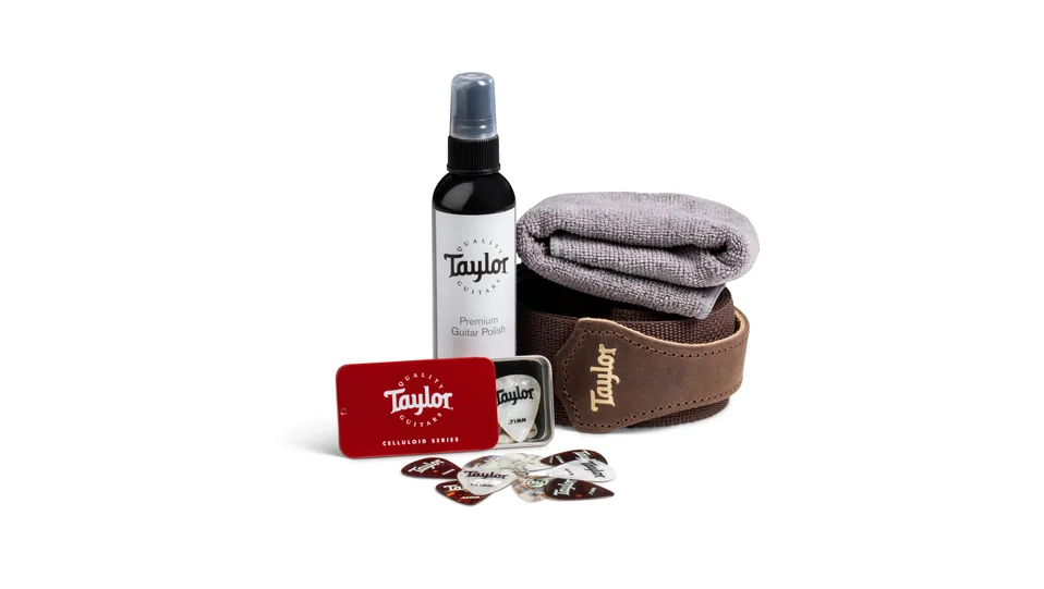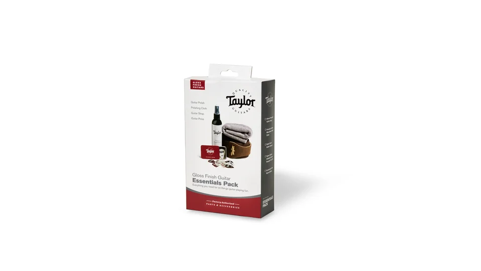 The Taylor Essentials Pack is your all-in-one companion for care, comfort, and stage-ready performance. Inside, you’ll find our premium Taylor Gloss Finish spray and microfiber cloth—perfect for keeping your guitar looking its best with that just-out-of-the-case shine. A fully adjustable Taylor guitar strap ensures a secure, comfortable fit whether you're practicing at home or performing live. We’ve also included a handy pick case loaded with assorted Taylor guitar picks, so you're always ready to play your way. Whether you're a new player or a seasoned pro, the Essentials Pack helps you look, sound, and feel your best—every time you pick up your guitar. Model #1322